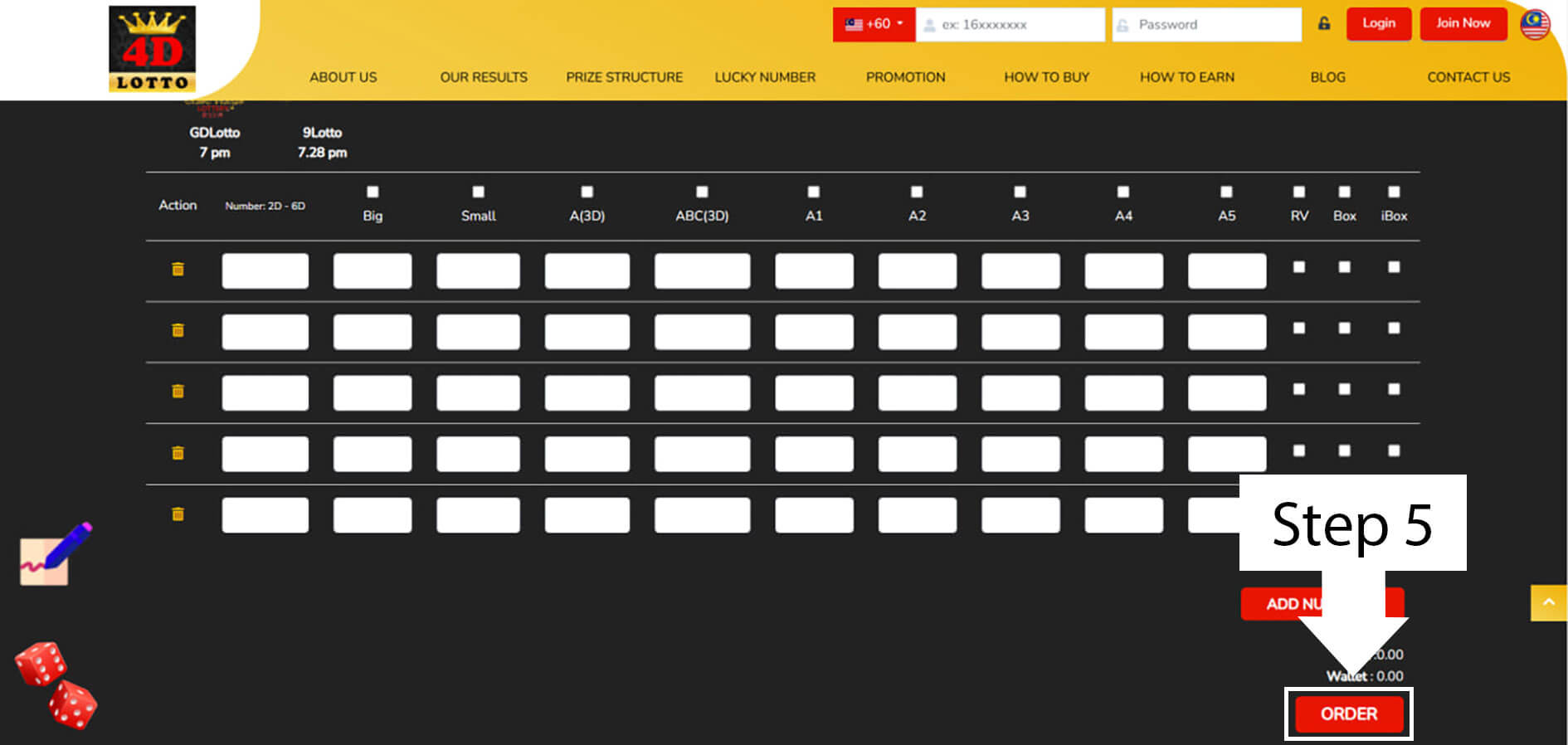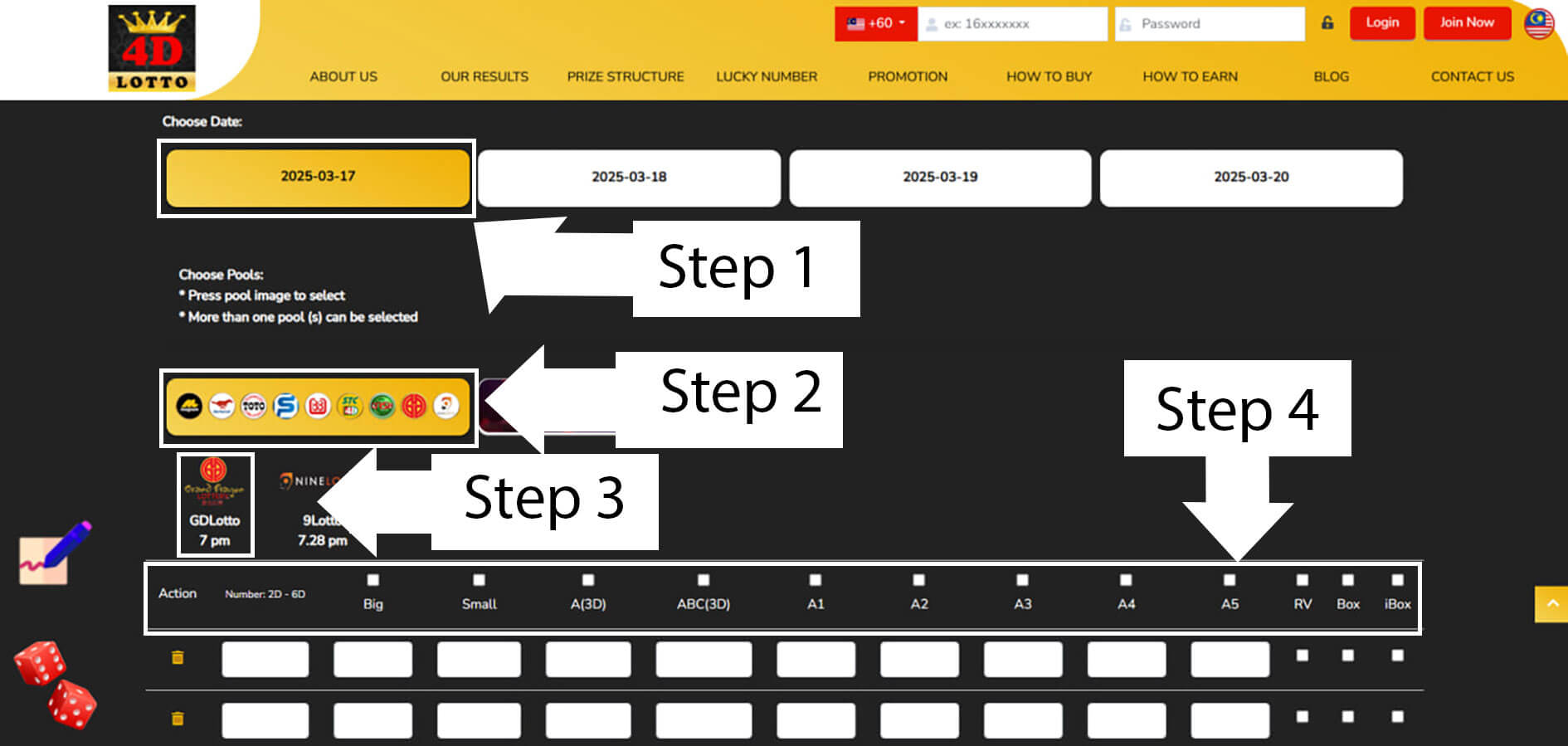 - Log in and go to the Buy 4D section.